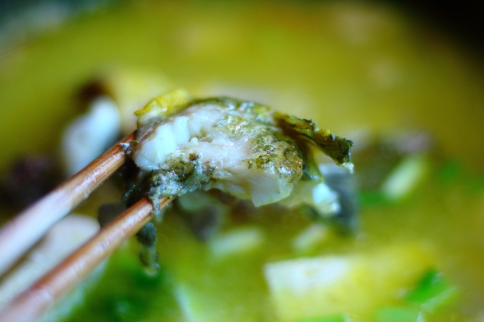 8、嘎鱼入锅炖5分钟左右后加入切好的豆腐一起继续保持小火慢炖;