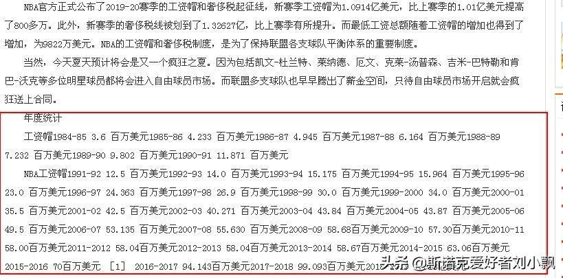看到这里大家多少队NBA工资帽有了一些了解,那么我们一起来看看历年来的工资帽是多少吧!!