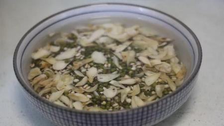 1.绿豆、薏米和百合洗净,用清水浸泡1小时以上,浸泡过的绿豆、薏米容易煮烂,绵软可口;