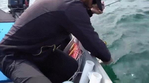 当水面拖拉机在搜索的过程中,突然发现周边出现暗话、暗涌时,此时可以降低速度,等到鱼咬钩后,只需适当用力扬竿刺鱼即可,千万不能用力过猛。由于拖拉机是水面饵,刺鱼的力度如果太大,就会直接将鱼拉出水面,这样非常容易脱钩跑鱼。