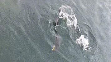 水面拖拉机在控饵时鱼瞬间咬钩