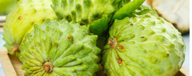 番荔枝又叫佛头果、赖球果、林檎等,是番荔枝科、番荔枝属落叶小乔木,树皮比较薄,是灰白色的,分枝多。叶子像纸一样薄,大多数椭圆状披针形,叶子的背面是苍白绿色,侧脉下面凸起,上面扁平。番荔枝原产热带美洲,全球各地都有载种。