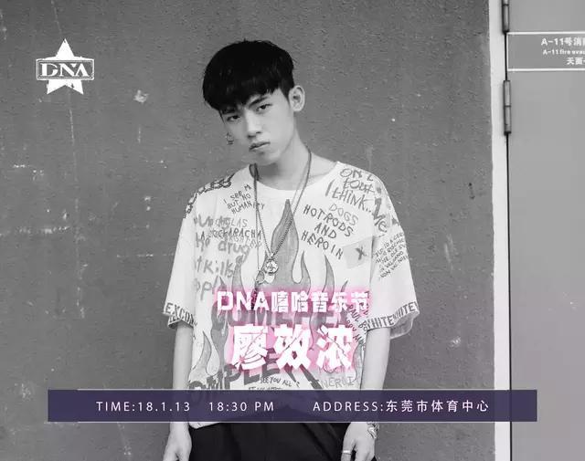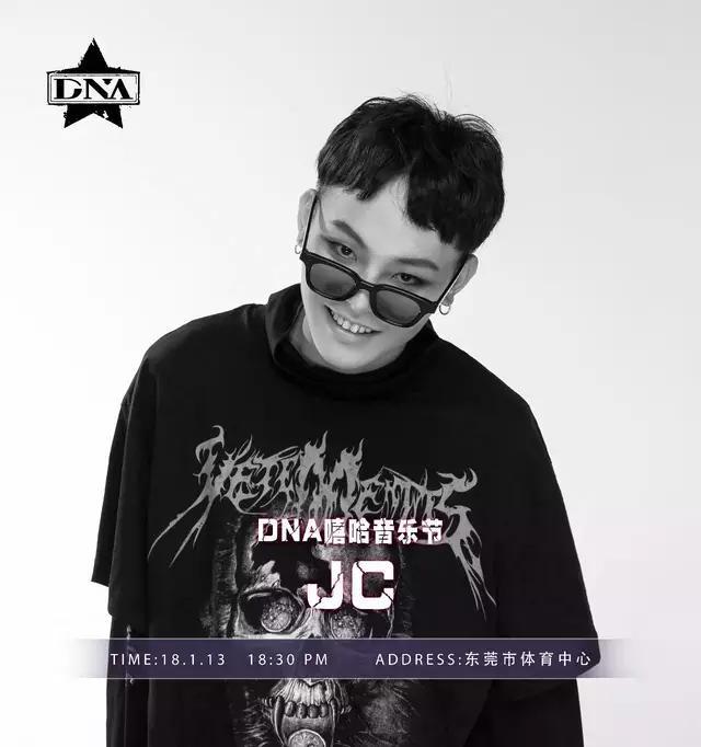 JC,出生于广东陆丰,16岁时就开始热爱上嘻哈音乐,长期的freestyle 经验练就了一张伶牙俐齿,并在2017年的东莞嘻哈文化节比赛中夺得冠军。
