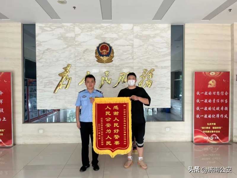 近日,受害群众刘先生、桑先生专程赶到崮山派出所,向民警赠送了印有