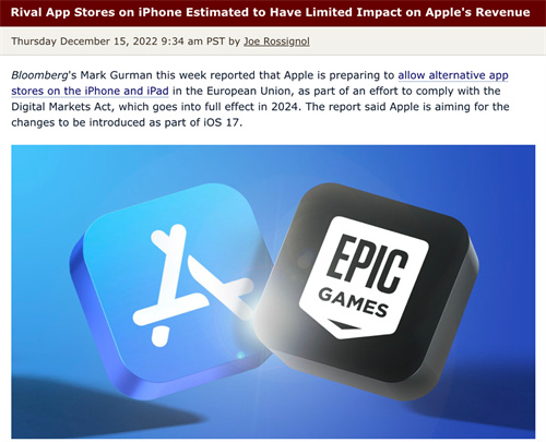 在近期研究报告中,投资银行摩根士丹利的三位分析师认为,分析师表示,《数字市场法》中的拟议变更是监管机构驱动的,而不是消费者驱动的。从消费者的角度来看,App Store提供了无与伦比的安全性、易用性(集中化)和可靠性,分析师认为对AppStore替代品的需求很小。根据摩根士丹利2022年秋季智能手机调查,仅有30%的受访对象表示,“极有可能”抛弃App Store,转而直接从开发者网站购买应用程序。
