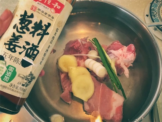 食材以及调味料的准备:老姜,大葱(白段),小葱,红枣(去核,下火的),花生,枸杞。