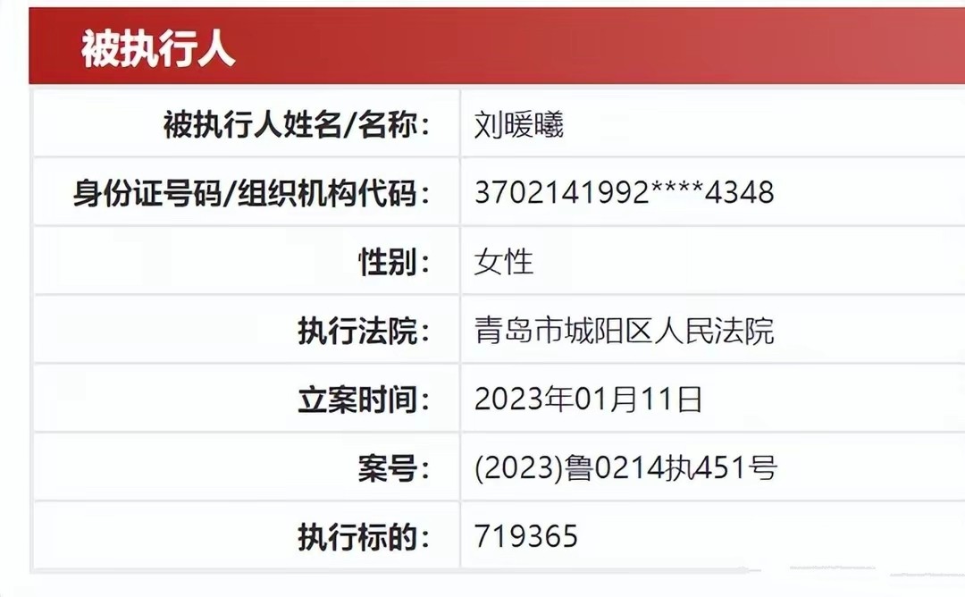 值得注意的是,最近刘鑫传来新消息,据报道,由于没办法偿还70多万的赔偿款,目前刘鑫已成为被执行人,执行标的为71.94万,立案时间是1月11日,执行法院为青岛市城阳区人民法院。