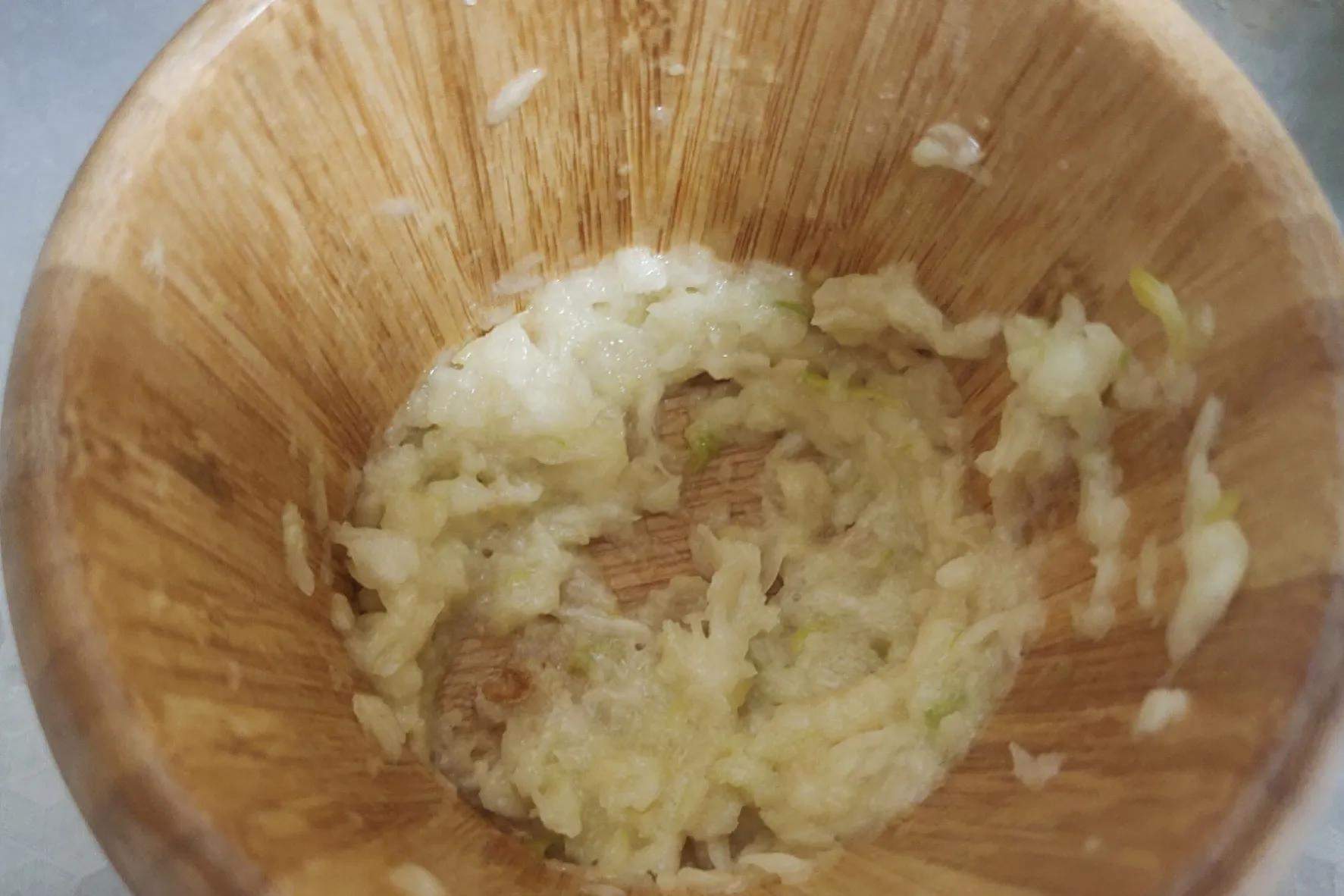 做法:(1)把黑木耳用温水泡发。再准备一个蒜臼子,把蒜瓣剥好,放一点毛毛盐,把它捣碎捣烂。