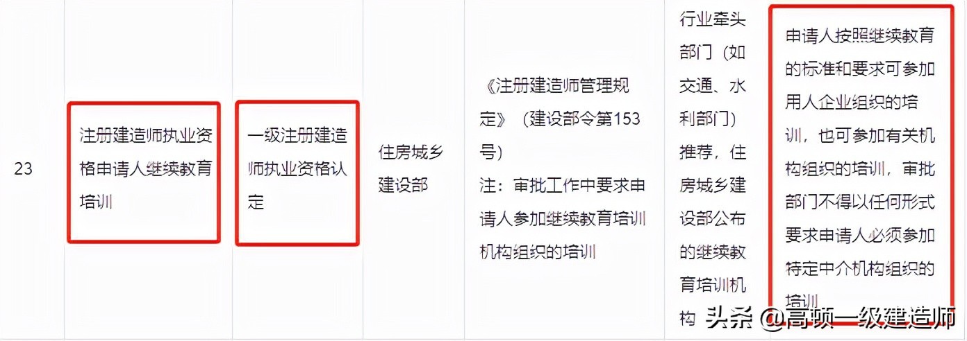 在《国务院关于第一批清理规范89项国务院部门行政审批中介服务事项的决定》发布后,一级建造师继续教育培训工作暂时中断,直到2021年9月3日中华人民共和国住房和城乡建设部发布了《一级注册建造师继续教育政策解读网络课程正式上线》,全国市长研修学院精心制作了9门政策解读网络课程,于日前在“全国住建系统专业技术人员在线学习平台”正式上线,免费提供给一级注册建造师作为继续教育课程学习,并计入继续教育学时。
