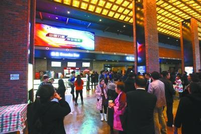 2月27日,中国文化传媒集团旗下第六家影院——中传国际影城北京亦庄旗舰店开启营业。图为当天观众在影院前厅候场观影。