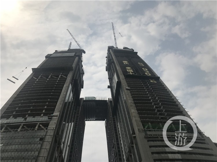 中建八局西南公司来福士广场裙楼施工主管纪俊宏介绍,去年底,T3N塔楼完成核心筒封顶,目前完成的是外框架钢结构封顶,预计7月完成全楼封顶。T3N塔楼外框钢结构封顶,标志着重庆在建第一高楼主体结构施工进入尾声,重庆“新地标”即将全面呈现。