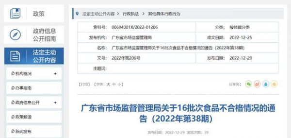 广东省市场监督管理局已要求辖区市场监管部门及时对不合格食品及其生产经营者进行调查处理,责令企业查清产品流向,采取下架、召回不合格产品等措施控制风险,并分析原因进行整改;同时要求辖区市场监管部门将相关情况记入生产经营者食品安全信用档案,并按规定在监管部门网站上公开相关信息。