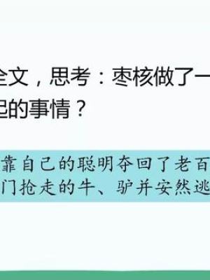 2.是什么牵走了牛、驴,大伙愁得很。枣核说:“大家都不用愁,我有办法!” 有的人不相信,说:“我才不信咧,你别小人说大话啦!”枣核也不争辩,只是说:“不信,你们就等着看。”