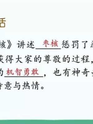 这篇课文记叙了一对老夫妻生了一个枣核大的孩子名叫女生枣核,枣核本领高强,智斗恶霸,帮老百姓要回牲口。