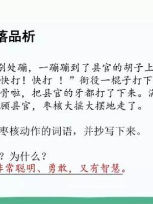 大家觉得枣核那么小,面对强大的县官和衙役们,根本就不是他们的对手。从枣核的话可以看出他很勇敢,不畏强权。