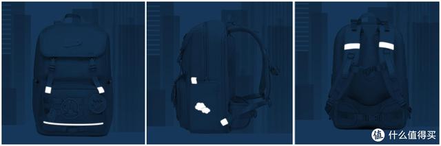 为了增强夜间和雨雾天气情况下的出行安全,书包的正面、肩带、侧面都设有反光条,可以通过直播反光来提醒过往行人和车辆,提高小朋友的行走安全性,这个360°的反光条还是非常贴心,孩子出行安全系数倍增。