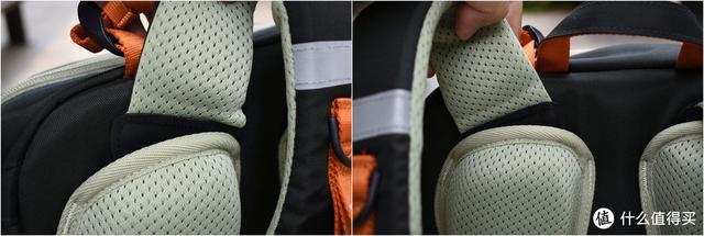 肩带部分设计尤为巧妙,肩带上端不是单纯缝在书包上,而是活动联结,可以做左右品牌120°转动,适合不同肩宽的孩子,也很好地十名匹配不同胖瘦,不同肩宽的儿童。这种具有可旋转的特性肩带,我还是头一次在儿童书包上见到。