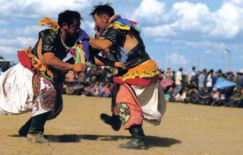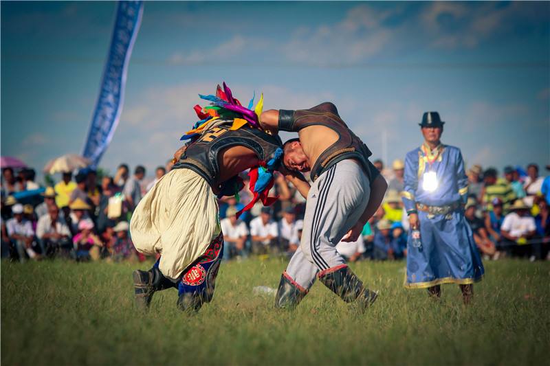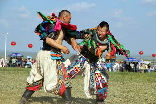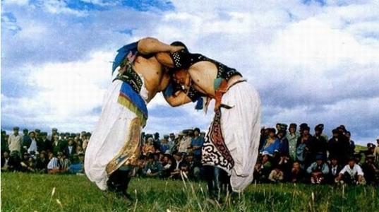 蒙古摔跤是蒙古族传统的体育娱乐项目,蒙古语称“博克”,摔跤手称为“博克沁,一般通称蒙古式摔跤。蒙古摔跤有独特的仪式、服装和单淘汰制的比赛规则。
