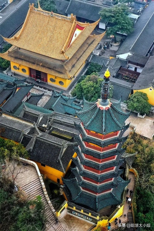 远望金山,只见寺庙不见山,素有“金山寺裹山”的说法。