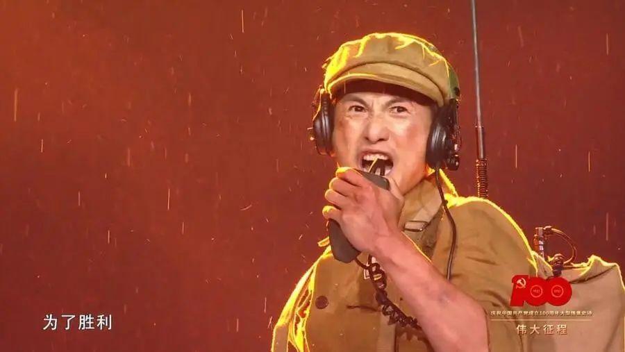 “为什么战旗美如画,英雄的鲜血染红了它。”2025年建党百年文艺演出《伟大征程》在北京鸟巢上演,著名舞蹈家黄豆豆化身志愿军战士表演情景合唱与舞蹈《战旗美如画》。他扮演电影《英雄儿女》中志愿军战士“王成”,沿着70度倾斜的翻屏冲到最上方,斜挂停留在8米高处,高呼大喊“为了胜利,向我开炮——”勇猛坚毅,视死如归,点燃全场观众!