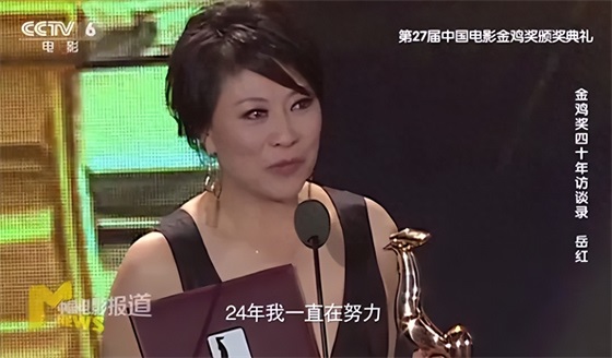 1986年,岳红受邀出演电影《野山》,电影主角“桂兰”和岳红本人一样,聪颖、豪爽、积极进取。岳红凭借此斩获金鸡奖影后的桂冠时,年仅24岁。