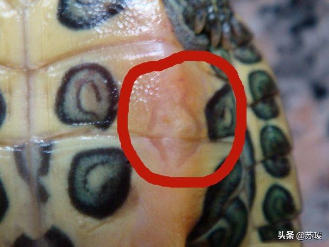 ❈甲壳感染主要症状:甲壳表面变色,一般来说,颜色会深于其他位置。感染部位能够明显看出与其他位置不同;感染处轻轻按压,会发现盾片变软,盾片下可能有微量出血;感染较为严重时,可能会在盾片下有大面积出血或者渗液,这个时候去按压感染处,会发现骨板深度变软,同时龟龟反应剧烈,说明压痛感明显。