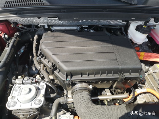 接着我们转到车辆的发动机舱部分,检测一下车辆的前部是否存在事故,已经机械部分是否存在拆卸的情况,检测前给大家科普下车辆的动力总成,本车搭载的是2.0L涡轮增压发动机,最大马力205Ps,并且因为是混动版本(插电式混合动力),本车也搭载了电机,电机的总扭矩达到600多,与之匹配的是6速湿式合变速箱,在这套动力组合下,官方给出的百公里加速为4.5s,这个成绩不少人都称为”国货之光“,号称秒了所有50万一下的车。