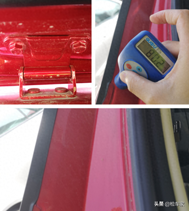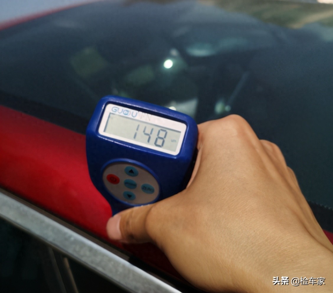 那就废话不多说上干货,开始今天的检测,我们先来看一下车辆的外观漆面部分,前杠等部分检测并未发现有后期喷漆的情况,毕竟车辆的公里数也不多,不一定需要喷漆,但是很多位置上面细小的划痕也有点过多了,应该也是日常使用导致的,而且前任车主又怎么会在意这些呢。前盖检测下来没啥问题,我们往下看看。