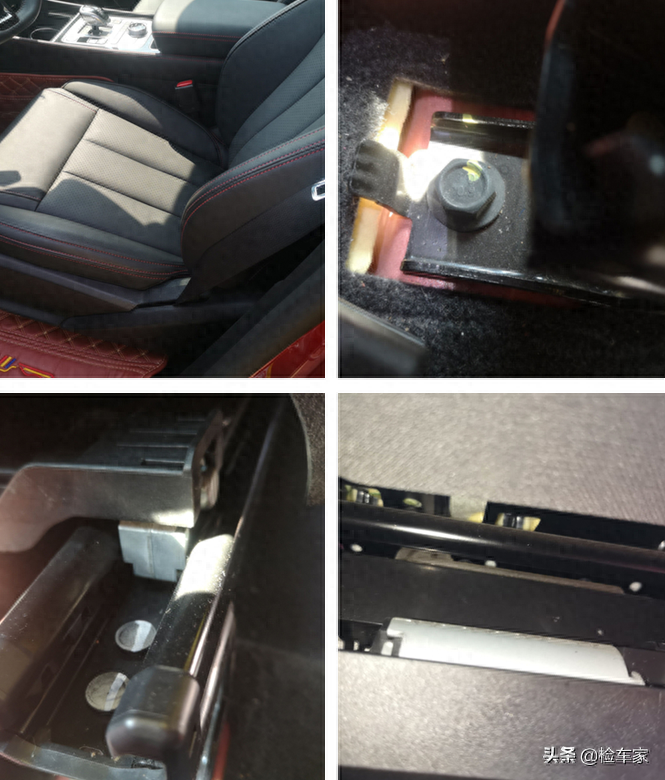 座椅部分检测,并未发现有明显的磨损痕迹,同时座椅的安装螺钉也在并未发现有拆卸的情况,座椅导轨处也并未发现有泥沙或者锈蚀的情况,座椅下部检测也并未发现有明显的锈蚀情况,而且灰尘都比较少,说明车辆内饰部分打理还是比外观部分好。