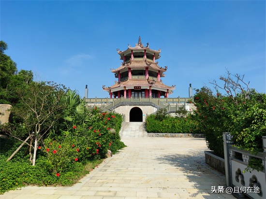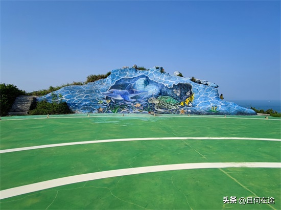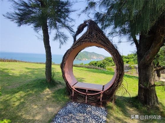 这虽是一个简单的圆形坐凳子,但坐在凳子的中间面向大海,也可拍出人好像坐在海面上的效果。这几个小景点位于蜜月山脚近海边。