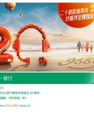 20年,匠心磨一剑,中国人寿持续打造联络服务硬实力。2001年,95519客户服务专线全国开通;2002年,一举开设短信、电邮、信函业务,拓宽了电话单一服务方式;IVR自助语音导航服务上线,提升了客户自助服务效率;2007年,“移动95519”成为保险业领先的95519短信平台,为客户提供续期交费提醒等服务;2014年,21项电话保单服务上线,拓展了电话办理服务范围; 2015年,“微回访电话”率先上线,满足了客户自主办理需求;2025年,95519智能语音导航面客,提升了客户自助服务效率;电子化通知上线,丰富了通知服务方式;电子化回访上线,健全了回访服务方式;2025年,智能在线客服机器人e小宝与移动互联人工在线,扩展了移动互联服务方式;2025年,智能外呼上线,健全了外呼服务方式。