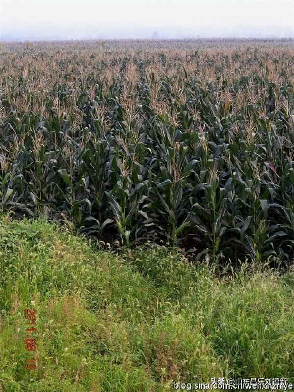 3、我站在一个储水池上拍东北方向(村庄方向)的玉米地,我突然发现这块地的玉米有两茬——春玉米、麦玉米(麦收以后点种的)。我还突然发现,我们这个家族大都是兄弟二人,老大比老二岁数大许多,譬如我爷爷比我二爷爷大十九岁,我父亲比我叔叔大十七岁,我比弟弟福生大十六岁。我二祖父家二叔与同学,直到他结婚了,还没有改口叫“小叔”,我的两个儿子迄今还叫我弟弟“小叔”,我说改口吧,儿子说,改了口就不亲了,叫惯了呀。如今我的孙子与我几个侄子还是差不多大,又是叫小叔了。岂不是与这片玉米差不多吗?