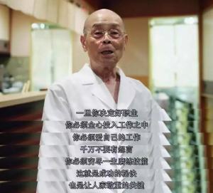 还记得寿司之神小野二郎说:“一旦你决定好职业,你必须全心投入工作中,你必须爱自己的工作,千万不要有怨言,你必须穷尽一生磨练技能,这就是成功的秘诀,也是让人家敬重的关键。”