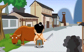 有一个名叫丁的厨师替梁惠王宰牛,手所接触的地方,肩所靠着的地方,脚所踩着的地方,膝所顶着的地方,都发出皮骨相离声,刀子刺进去时响声更大,这些声音没有不合乎音律的。它竟然同《桑林》、《经首》两首乐曲伴奏的舞蹈节奏合拍。