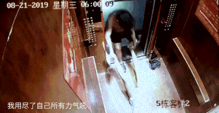 画面中,虽然瘦弱的女孩拼命大声呼救,用脚抵住电梯门,电梯门反复关上四次,可还是被力量悬殊的男友生生拖出电梯。