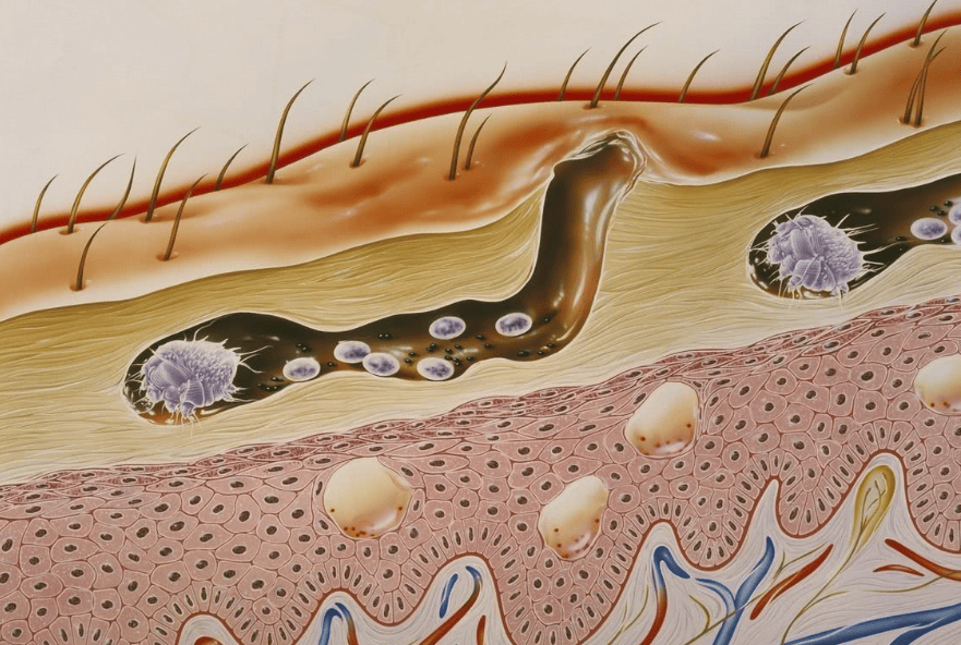 螨虫是一种非常常见的寄生物,它可以生活在人的皮肤、毛发、衣服和床单被褥上。螨虫感染主要是通过密切接触来传播,尤其是共用有螨虫的毛巾和床单被褥,最容易传播螨虫。
