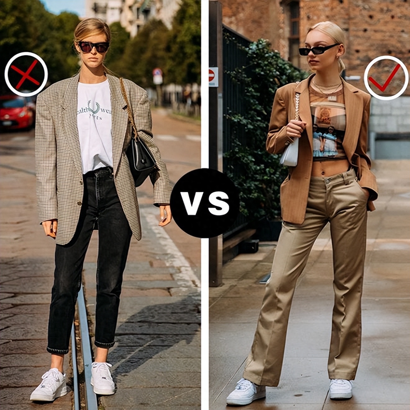 说完3个显瘦的技巧,再来聊一聊一些比较常见的穿衣误区,以及如何把这些误区换成正确的搭配思路。