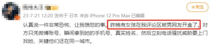 有个博主说,他的一位女粉丝,就因为在评论区和另一个男粉丝意见不统一,被人肉开盒了。