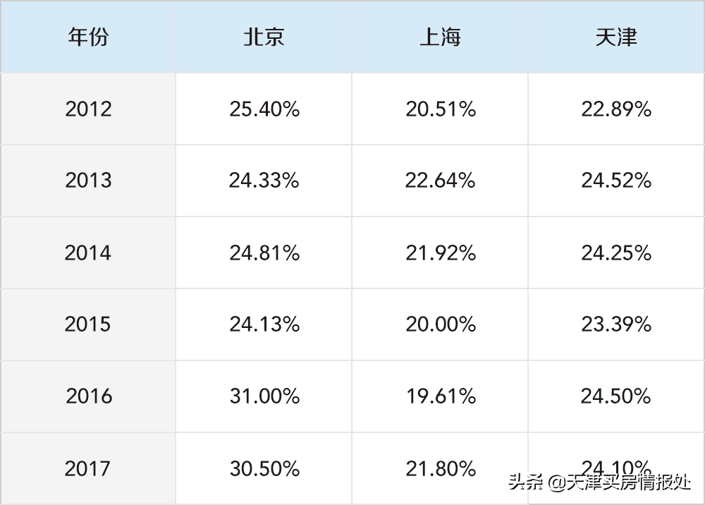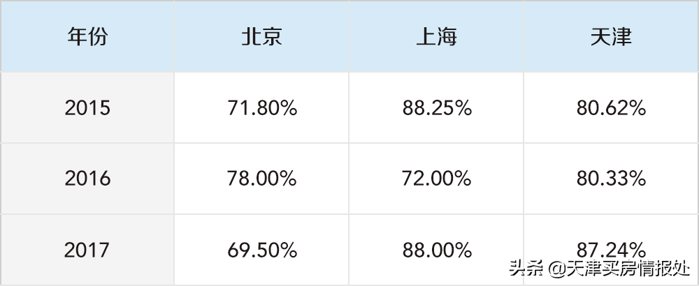 我们比对了近五年以来的北京,上海,天津三个城市一本的录取率。
