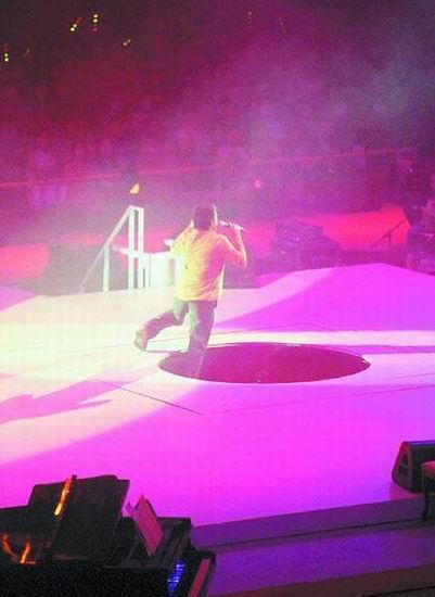 2003年,56岁的林子祥作为嘉宾为汪明荃的演唱会助阵,在演唱他那首经典曲目《男儿当自强》时,因为舞台事故,不慎踩空坠入九尺深的台底。