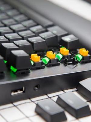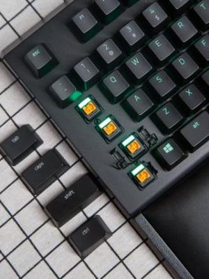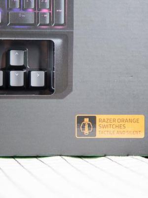这款黑寡妇蜘蛛精英版的三个轴体选择,七彩背光键盘什么意思,都是雷蛇专为玩家打造的,我选了橙轴背光。此外还有绿轴和黄轴。橙轴和绿轴都有一定段落感,但是橙轴按键敲击比较安静,绿轴则较为清脆。
