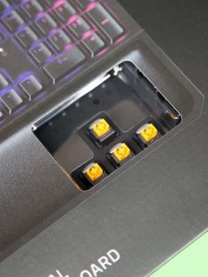 开箱就直接拔了键帽看看轴体什么造型,轴体一周都加了双侧墙设计,可以提高按键稳定性,同时还不妨碍撞色玩家自行更换键帽,键盘背光怎么调整。