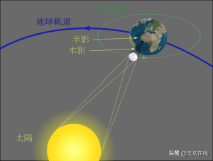 日食是由月球在地球上的投影引起的。目前知道的新月可以在地球上形成的投影有三种:本影、半影和伪本影。