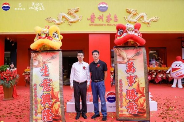 仪式典礼现场,舞狮团队登台演出,为贵州茅台第三代专卖店开业舞狮助兴,争光添彩。点睛醒狮后,祥狮时而奔腾,时而飞跃,祝福贵州茅台香飘世界,享誉天下。贵州茅台酒销售有限公司广西省区经理王良、广西尊和酒业有限公司总经理廖钟卫等领导嘉宾莅临仪式剪彩纳吉。