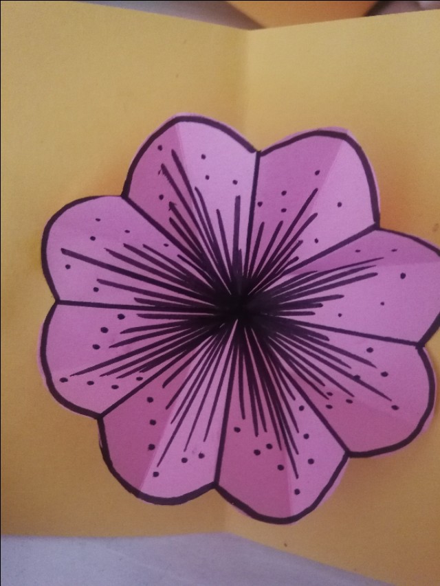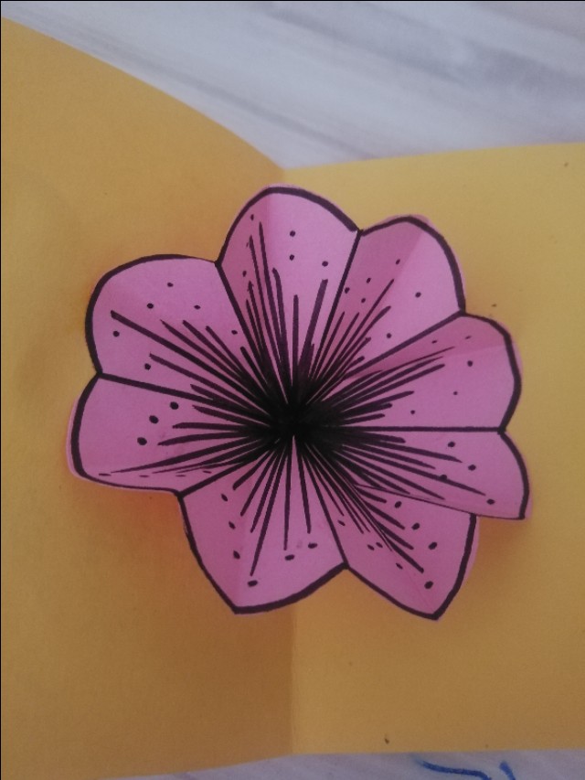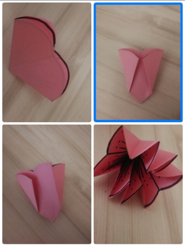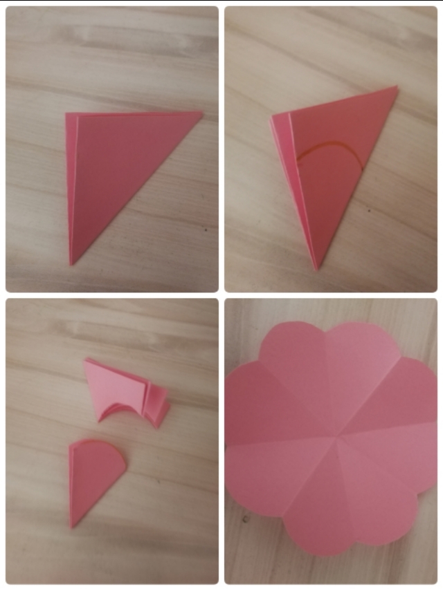 6.再对折,画花瓣形状并剪下来,展开。