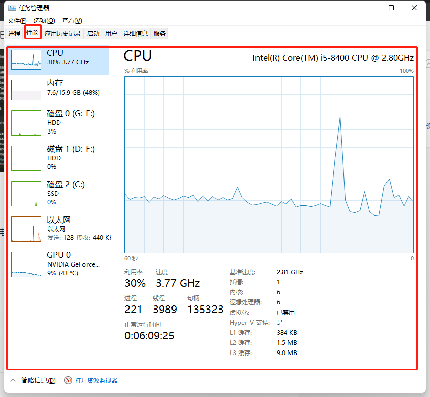 直接将鼠标移到电脑下方的任务栏上面右键,选择任务管理器。或者Ctrl+Alt+Delete调出任务管理器。将任务管理器调到性能界面。这里面能查看到包括CPU、内存、硬盘、磁盘和显卡等各种信息。