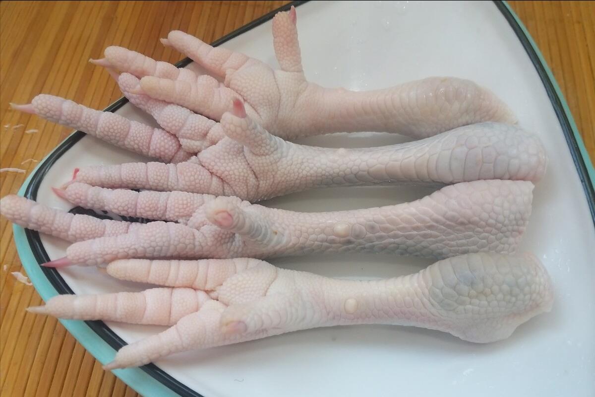 1、把鸡爪子准备好,我买了一斤,买回来之后,我们首先需要将其指甲一个个剪掉,然后再将其彻底清洗干净。
