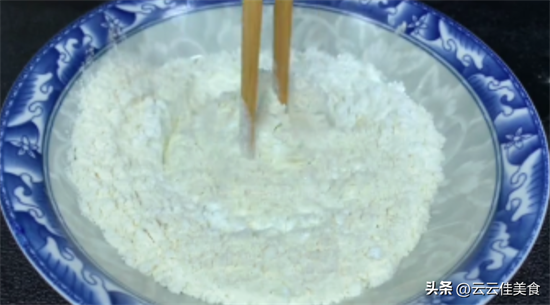 再准备一个碗,往里面加入两勺生粉,一勺面粉,搅拌混合均匀。这里要注意的是,炸鱼块正确的做法应该是放面粉和生粉两种,炸出来的鱼块才酥脆可口,而且放凉了也不回软。