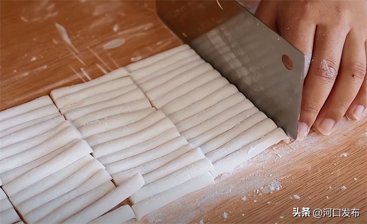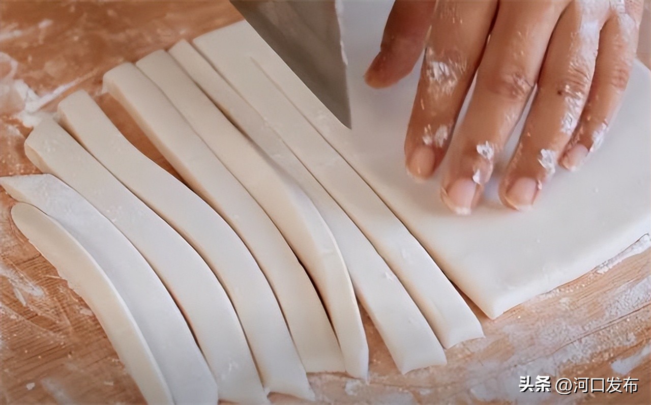 5.擀好之后切成长条。