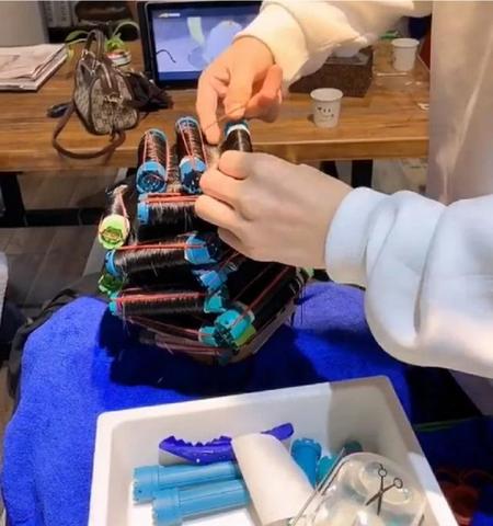 这是排杠方式和杠具大小,重要的是头发裁剪的层级形状,中低层次为好。